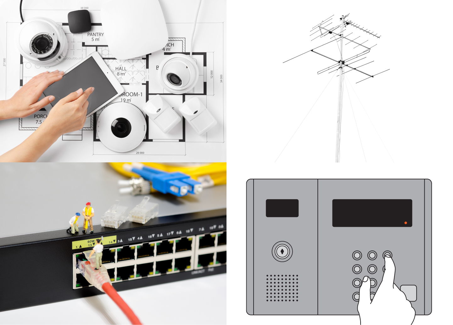 マンションのインターネット工事や防犯設備の設置、テレビ共調設備、CATV、インターホン、LED照明器具の導入、